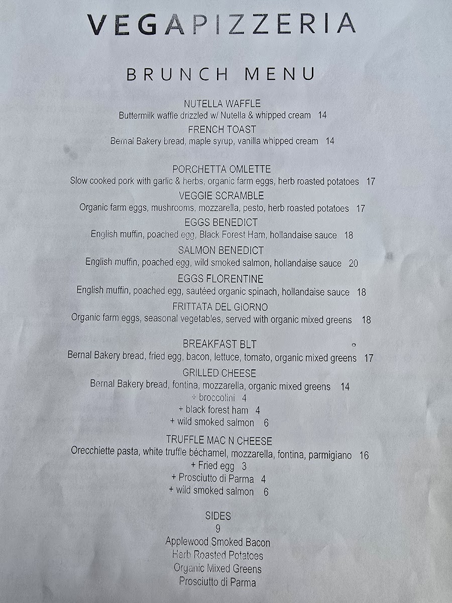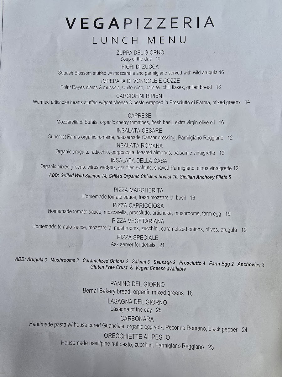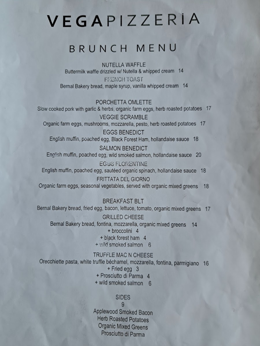 Vega - CA 94110 Menu