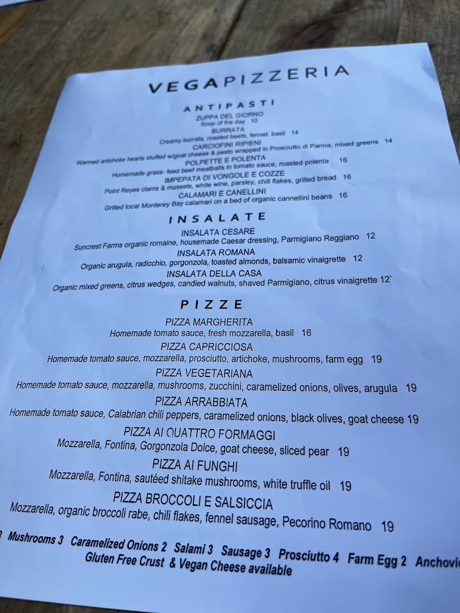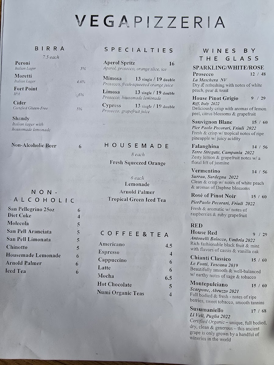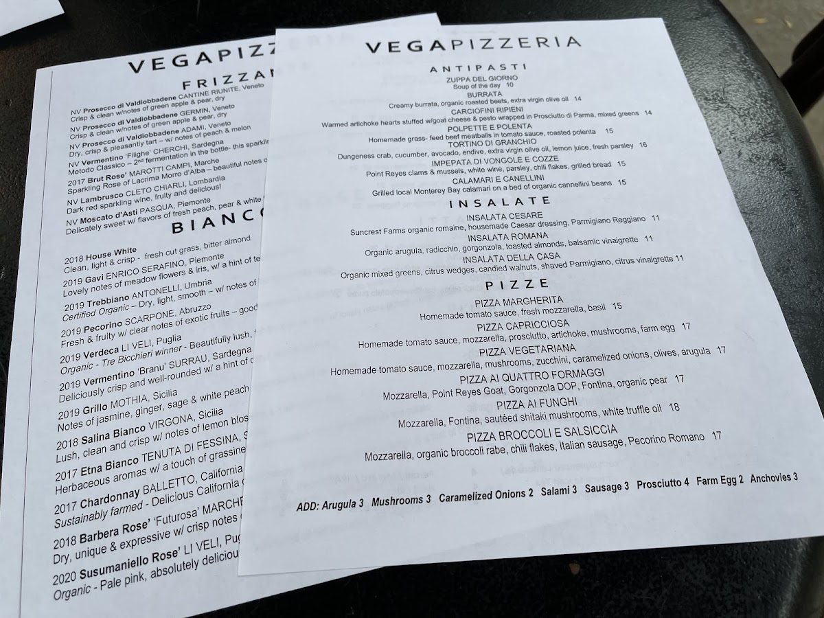 Vega - CA 94110 Menu